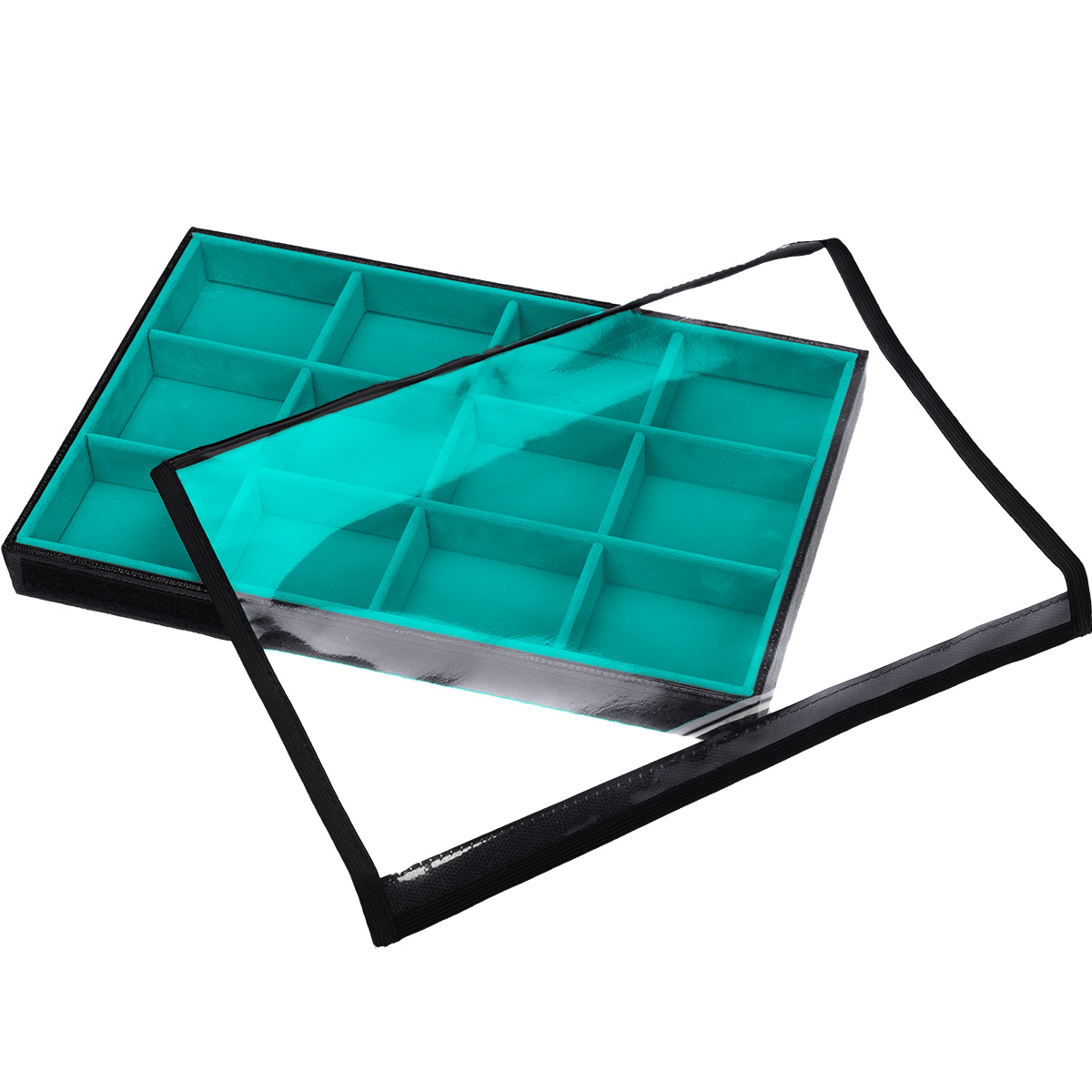 - Bandeja com 12 nichos que medem aprox 6x5cm cada.